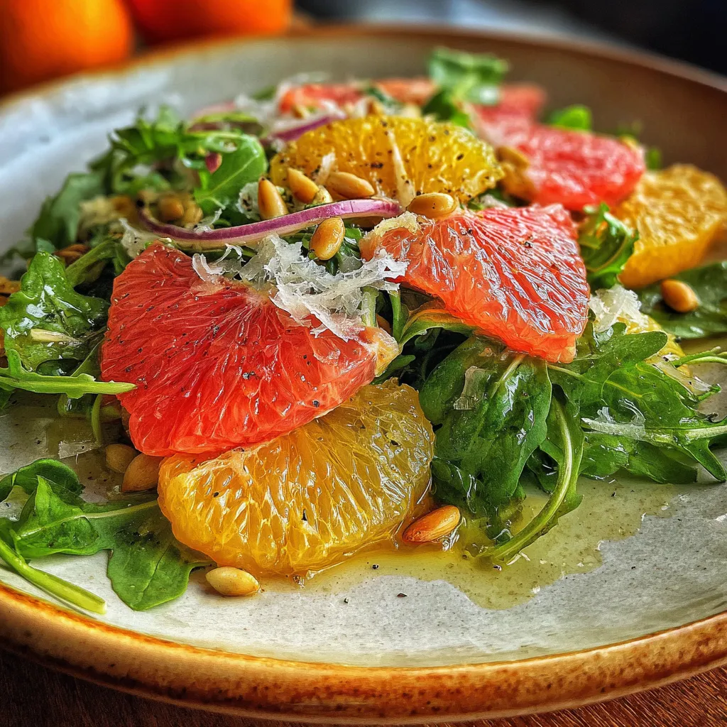 Arugula Citrus Salad delivers a burst of zesty sunshine on your plate, combining peppery greens with juicy orange and grapefruit segments. A quick honey-lemon vinaigrette coats each bite, while thin slices of red onion, shaved Parmesan, and toasted pine nuts add crunch and creaminess. This vibrant, easy-to-assemble lunch is perfect whenever you crave refreshing flavors with minimal fuss—grab your bowl and let’s dive in!