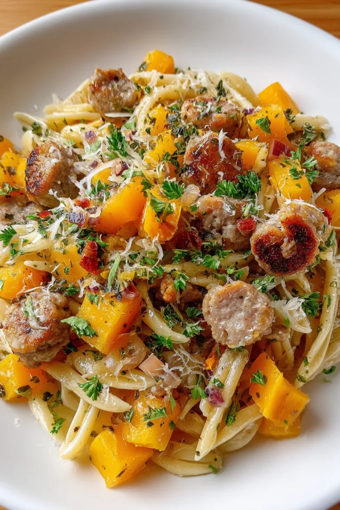 With roasted butternut squash, savory sausage, and creamy Parmesan, this pasta dish brings comforting autumn flavors to your table. Perfect for cozy gatherings!