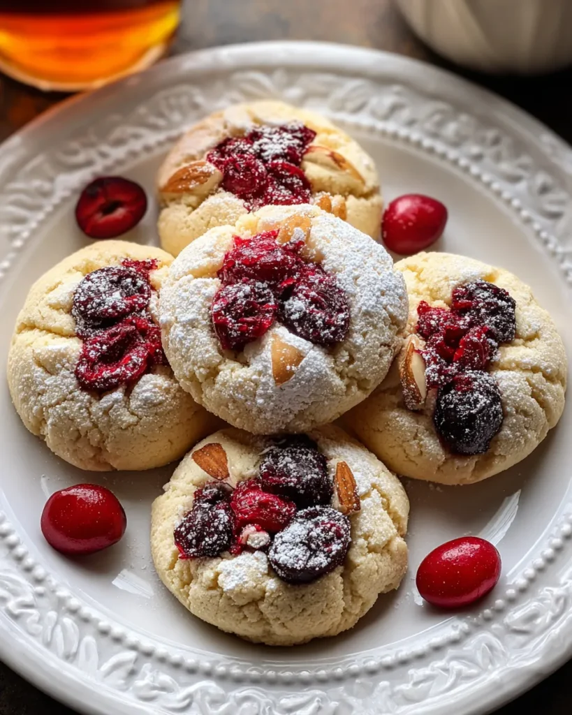 Experience the perfect blend of buttery richness, nutty almond essence, and juicy cherries in every bite of these soft, chewy cookies that are truly irresistible.
