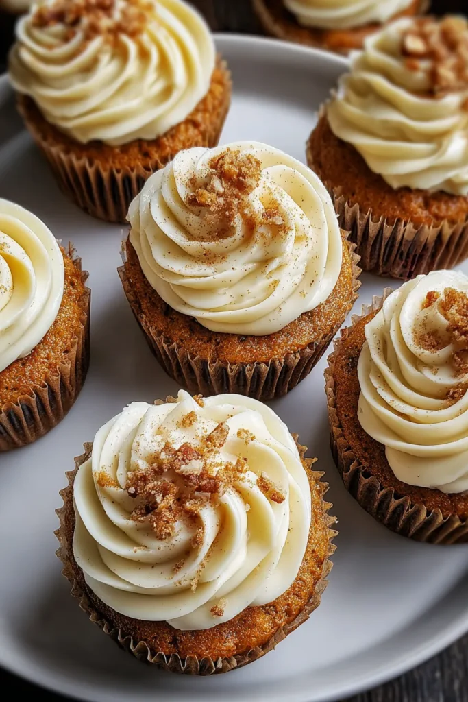 Pipe a swirl of smooth cream cheese frosting on top of each cupcake using a star tip. Lightly dust with cinnamon or a sprinkle of crushed nuts for an elegant finish that balances sweetness with a hint of tang.